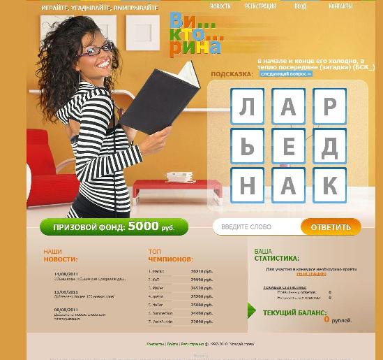 yaznayukino.ru, предлагает угадывать фильмы, за правильно угаданные фильмы начисляется несколько рублей. На самом деле (об этом можно увидеть внизу в ... Читать дальше »